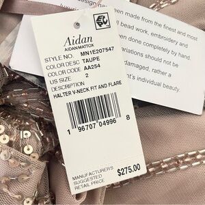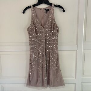 NEW Aidan Mattox Taupe Sequins Halter V-neck Mini Dress Size 2. NWT
