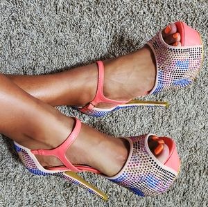 Color: Nude with Multi Color Rhinestones and Coral Straps