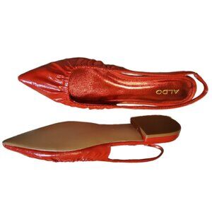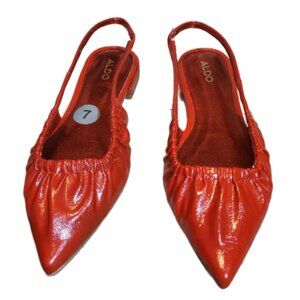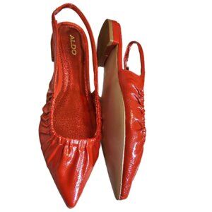 New Aldo Red Faux Shiny Patent Leather Pointy Flat Comfort Singback Shoes SZ 7 M
