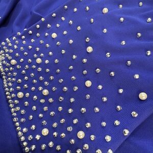 New Alex Evenings Petite Pearl Embellished Top Size SP Blue Women’s