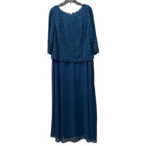 New Alex Evenings Women's Plus Size 16W Stretch Lace Bodice Mock One Piece Gown