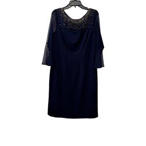 New Alex Evenings Women's Size 14 Embellished Short Sheath Cocktail Dress Navy