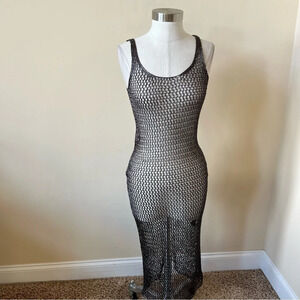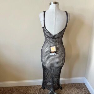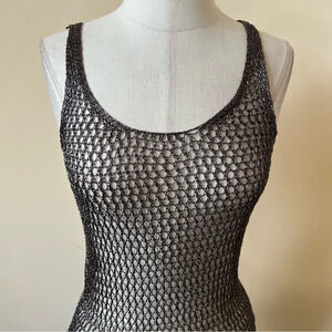 New! Alexa Chung Gray Mesh Metallic Dress coverup gunmetal nwt 26073