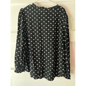 New Alexander Jordan ruffle neck black top with pattern and elastic banded sleev