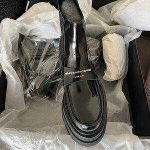 New Alexander Wang Black Carter Ankle Platform Loafer Patent Leather Boots Sz 41
