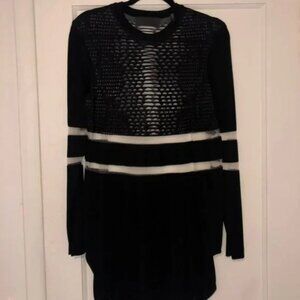 Brand new, never worn, no tags. Alexander Wang x H&M black knit long sleeve dress with perforated sheer mesh cut out pattern throughout. Super heavy duty high quality knitted material with sexy peekaboo mesh tastefully decorating tunic throughout. Tag starting to come off, does not affect wear. Wear as tunic or minidress. Approximate measurements: length 32.5", pit to pit 17.5", hips 18", shoulder to shoulder 15", bust 30", sleeve length 20". Blogger favorite, seen on Rumi Neely. Size XS. Box 2.