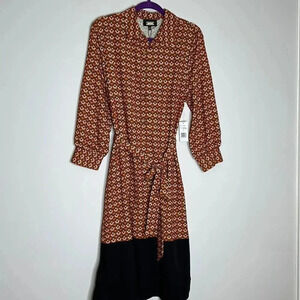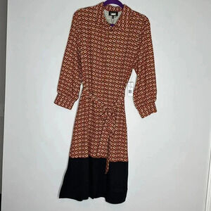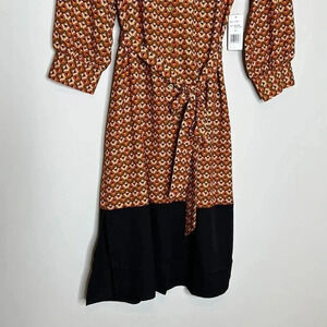 New Alexia Admor Dress 3/4 Sleeve Button Front S Geometric Belted