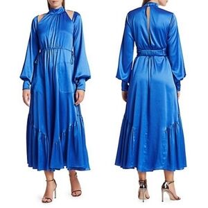 New Alexis Calypsa Satin Long-Sleeve Flare Azure Blue Dress NWT Size M (4- 6 US)