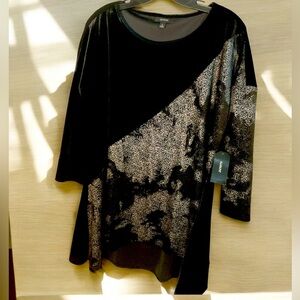 New Alfani Black and Silver Asymmetrical Graphic Blouse