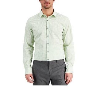 New Alfani Men's Slim Fit Houndstooth Dress Shirt, XXL Sage