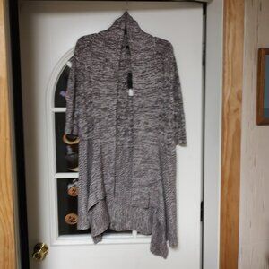 New with tag alfani open front cardigan size women's ox. It is metallic taupe 34 inches long sides are a little longer sleeves are 7 inches.