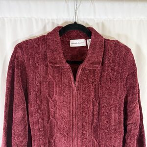 New Alfred Dunner Acadia Sweater Women's Large Chenille Knit Full Zip Brick Red