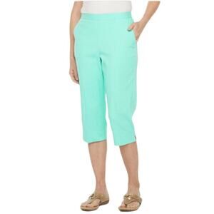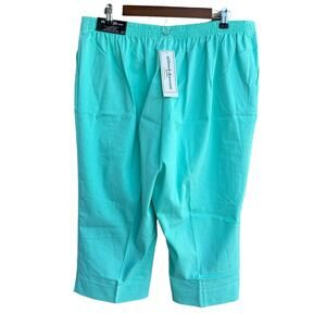 New Alfred Dunner Spring Lake Womens Aqua Classic Fit Flat Front Capri Pants 18P