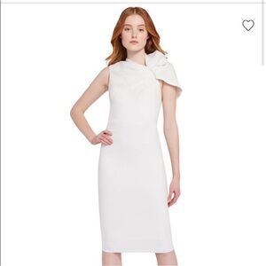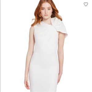 Minimalist in a crisp and clean design, this sheath dress lends flair in the form of slight ruching.