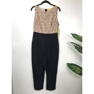 New Alice + Olivia Lace Bodice Jumpsuit Sleeveless Lace Overlay Wool 6 Holiday