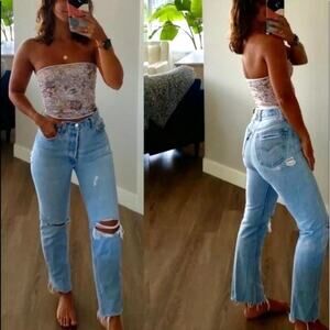 New Aligrace Custom Distressed High Rise Jeans Redone Levi’s Size 25