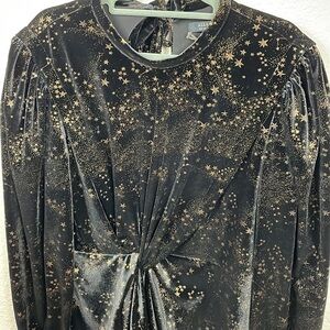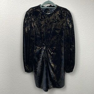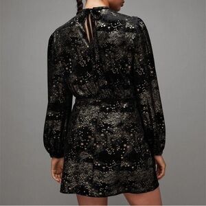 New All Saints Jemima Star Dress Black Velvet Metallic Gold Printed Faux Wrap 10