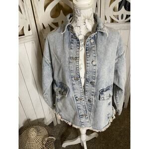 New! AllSaints Hettie Shacket Womens Denim Button Jean Jacket Oversized US 4