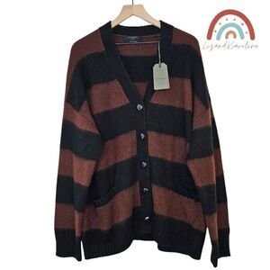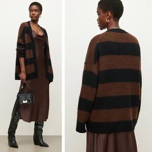New! AllSaints Lou Stripe Wool Italian Brushed Knit Cardigan Oversized Sweater