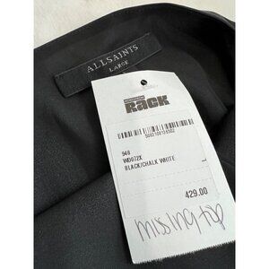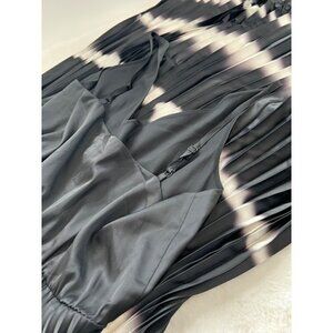AllSaints Size L Curtis satin tie dye pleated midi dress in black/chalk white