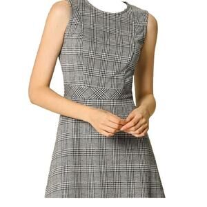 New Allegra K Sz M Women's Houndstooth Plaid Dress Academia Classic career