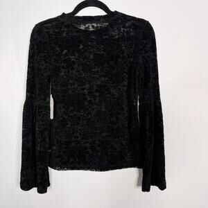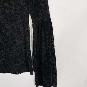 New Altar'd State Small S Black Velvet Burn Out Long Flare Sleeve Blouse Floral