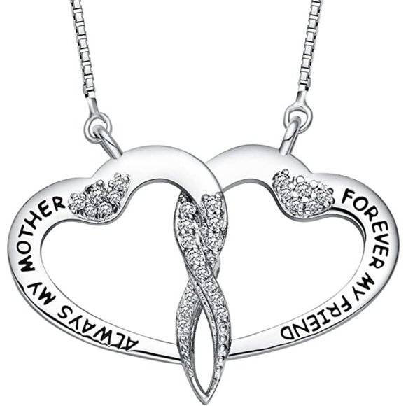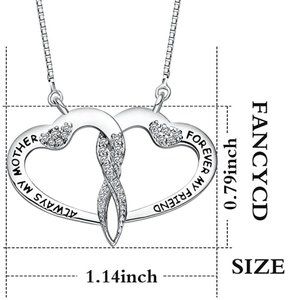 New "Always My Mother Forever My Friend" Necklace. Chain is 18" + 1.9" extension. Pendant is 0.9 inch long x 1.18 inch wide. Platinum plated CZ crystal.