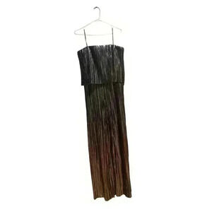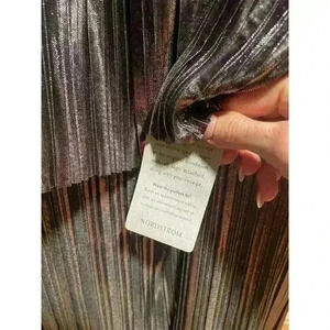 Rock the holiday party circuit in this incredible lewk. Light as air pleated metallic fabric skims the body with plenty of stretch. Elastic at the bust and waist with back zipper.