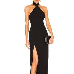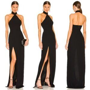 New Amanda Uprichard long queen dress black maxi split hem halter backless gown
