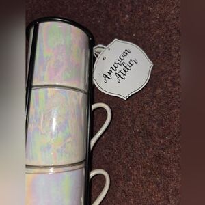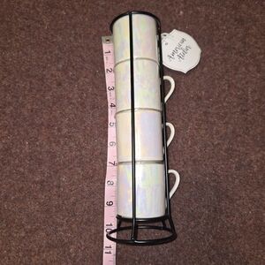 New American Atelier Ceramic Mini 3oz Espresso Cups Set of 4 with Metal Stand