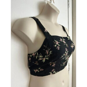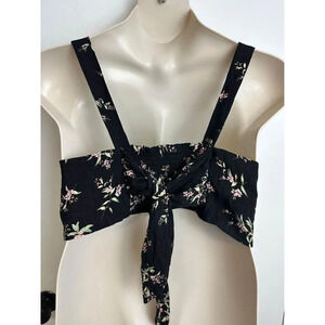 New American Eagle Black Flower print cropped top, ties in the back, size XL #0468