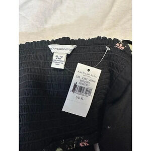 New American Eagle Black Flower print cropped top, ties in the back, size XL #04