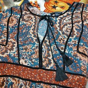 New without tag american eagle top size women's small. It is a blue brown multi-color has wide sleeves at the bottom.