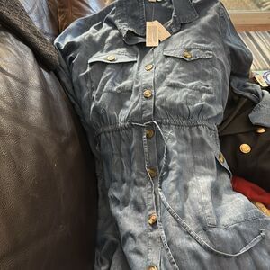 New American Eagle Chambray Long Sleeve Button Dress Lyocell