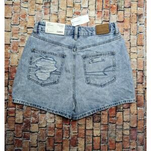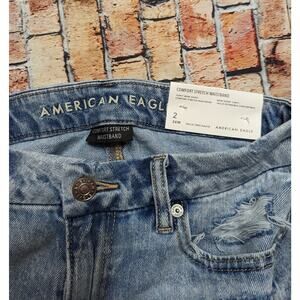 New American Eagle High Rise Mom Comfort Stretch Waist Destroyed Denim Shorts