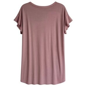 This comfy and cute American Eagle Outfitters Flutter Sleeve T-Shirt Dress in a pastel mauve purple. A soft cotton-modal blend, this breezy pullover dress features a relaxed fit and stylish layered flutter sleeves for just the right touch of feminine flair.