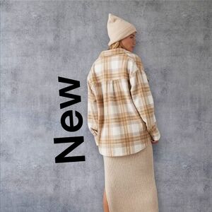 Stay stylish and cozy with this plaid tan jacket. Perfect for layering, this jacket adds a touch of elegance to any outfit.