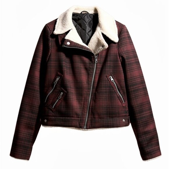 New with tags American Eagle Plaid Moto Jacket with Sherpa Lining Size M