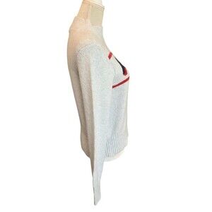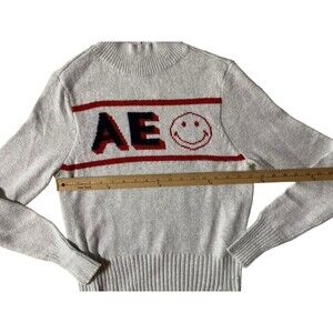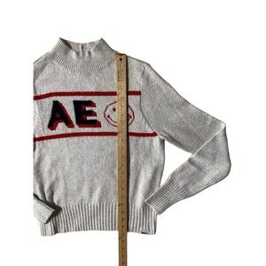 New! American Eagle Smiley Mockneck Sweater gray Marled Blue Red Logo Women's M
