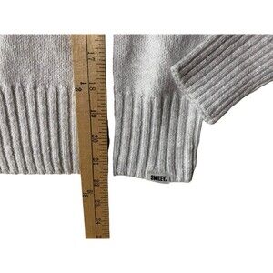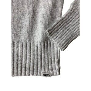 Introducing the American Eagle Smiley Mockneck Sweater, a cozy and stylish addition to your wardrobe. This sweater is made of a cotton polyester acrylic blend (55/25/20) that is lightweight and stretchy, perfect for all seasons. The marled gray color with a smiley face graphic logo adds a touch of fun and modern style to your outfit. Featuring a tight-knit pattern, raglan sleeves, and a mock neck, this pullover sweater fits regular and is suitable for casual occasions. It is easy to care for as it is machine washable. This sweater is perfect for those who love the kidcore and y2k fashion styles. Get yours today in size M and add a touch of happiness to your wardrobe!