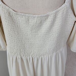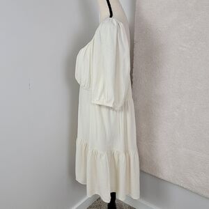 New American Eagle Women's Sz XXL Beige Linen Puffy Sleeve Milkmaid Mini Dress