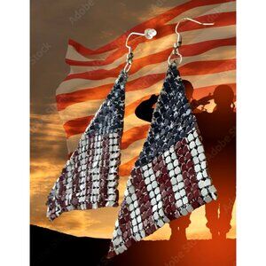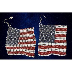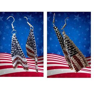 New American Flag Earrings Drop Dangle Stars Stripes Patriotic July 4 Veterans