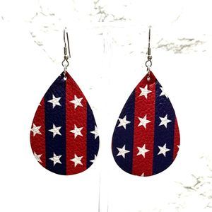 New American Flag Faux Leather Stars Stripes Patriotic Dangle Earring