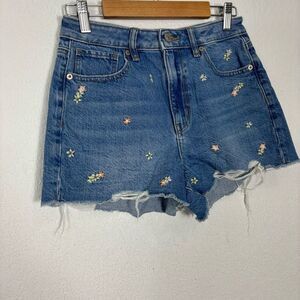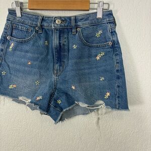 New American Eagle Hi-Rise Floral Embroidered Cut Off Mom Jean Shorts Size 2