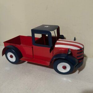 Here is a new decorative Truck, Add patriotic, and nostalgic look to your indoor or outdoor decor, this decorative planter is just what you are looking for. Made of metal with a rustic, antiqued appearance, it is designed after the trucks of yesteryear, and you can park a small plant in the open bed. Even if you don't have a green thumb, it is a stylish piece of decor to add to your collection that you can display for its looks alone, or decorate however you choose.And this does have marks and distressing in the finish as i show closeup pictures of them, are made this way, is new, This measures14-inch long, 7.25-inch wide, 6.5-inch high , Nice decorative Truck
