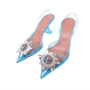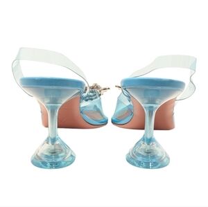 New Amina Muaddi Begum Glass Slingback Sky Blue 70mm Pointed Size EU 39