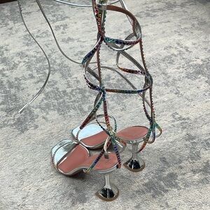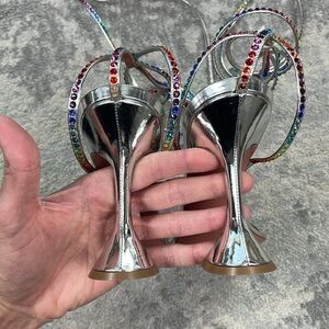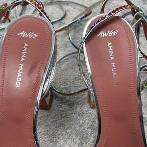 New Amina Muaddi x AWGE Rainbow Crystal LSD Wrap Around Gladiator Sandals Heels