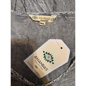 New Anandas Top Womens Plus Size XXL Gray Stone Wash Boho LS Tunic Blouse Shirt