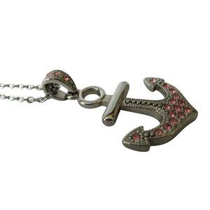 This anchor pendant necklace adds a touch of elegance with its pink crystals and silver-tone finish, suitable for casual or formal wear.