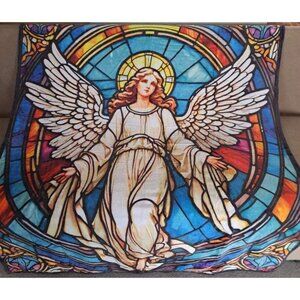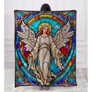 New Angel Stained Glass Plush Throw Blanket Gift Angelic Spiritual Religious NIP